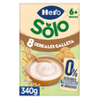 Papas Hero Solo 8 cereais com bolacha. 0% de açúcares produzidos ou adicionados. Elaboradas com cereais integrais. Papas ricas em fibras, com multivitaminas, cálcio e ferro. Não contém óleo de palma nem açúcares adicionados.
